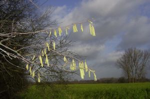 Die Hasel ist eine windblütige Pflanze. Zeitig im Frühjahr bildet sie Blüten aus, wenn der Wind durch die blattlosen Zweige den Pollen leicht aufnehmen und weit tragen kann.