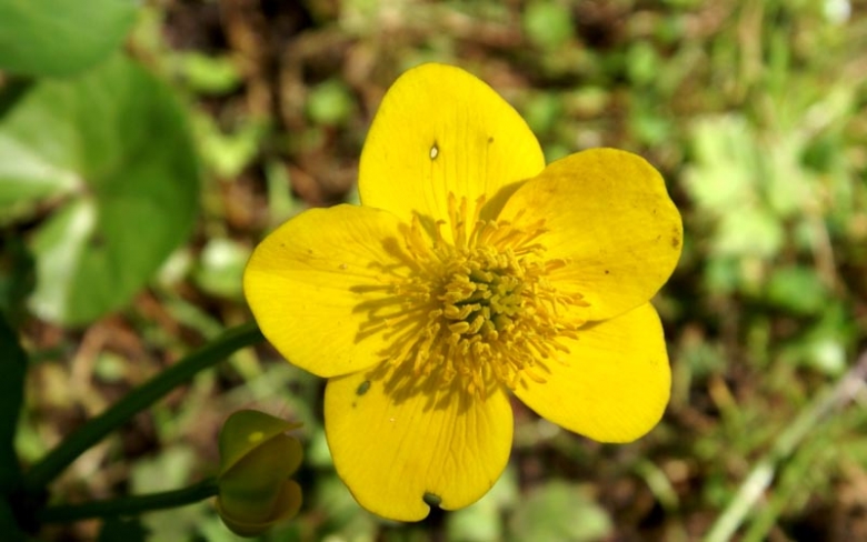 Die Blüte der Sumpfdotterblume. Fünf Blütenblätter säumen den Kranz der vielzähligen Staubgefäße. Copyright: Werner Mühlen (Landwirtschaftskammer NRW),