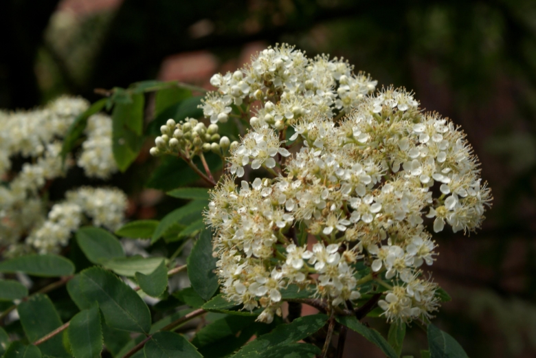 Die Blüten der Eberesche stehen in vielblütigen Trugdolden. Sie verinigen sich so zu einer großen zusammengesetzen Blüte. Die angepassten Bestäuber sind kurzrüsselige Insekten wie Wespen, Schwebfliegen und weitere Fliegenarten.
